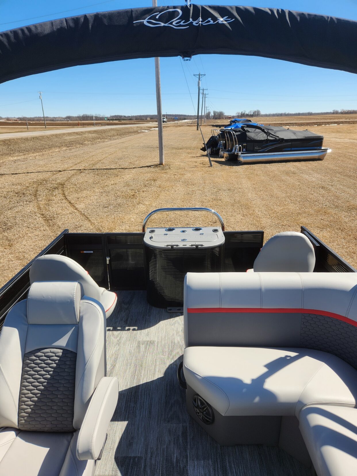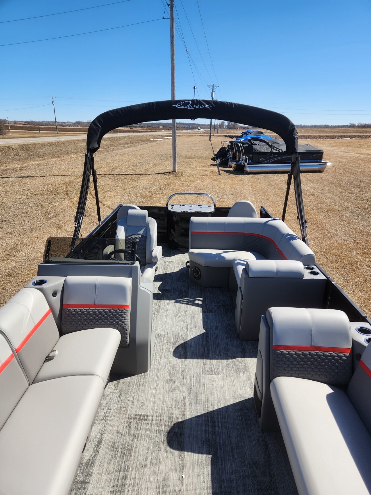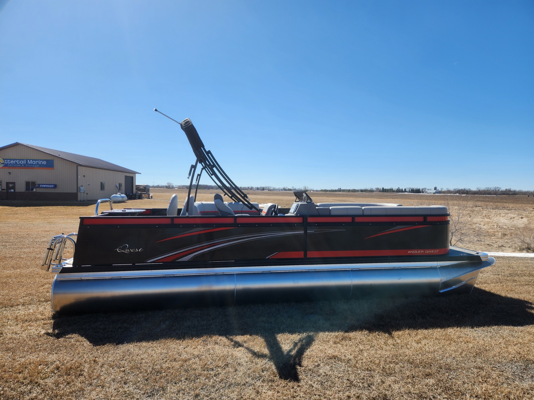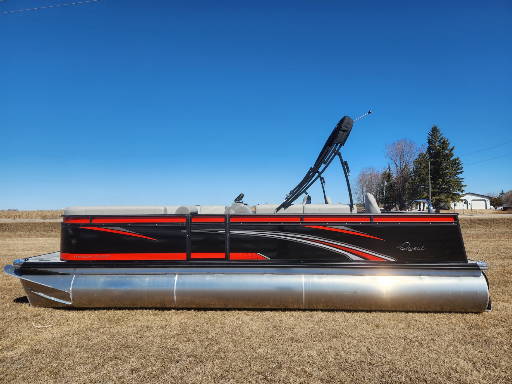 2024 Angler Qwest 8522 XRE Cruise LTZ with Mercury 115ELPT. This Pontoon is Black with Cayenne accents, Gray Interior,, Shadow Plank Vinyl Flooring, Tilt Out Trash Center, High Pressure Washdown System and Ski Tow Bar. Lake ready is $46,999. NOW Fall Clearance Sale Price $38,999.00 for limited time. Plus title, tax and registration. Check out www.qwestpontoons.com for more options and information.